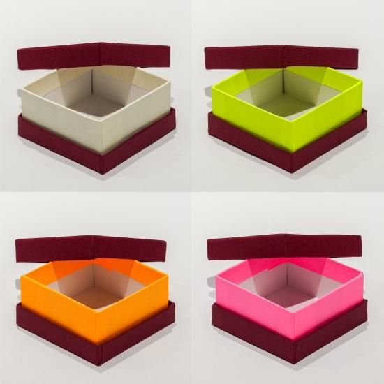 タント紙を貼ったシンプルな印籠蓋の貼箱です。内箱(スジ色)のカラーをご選択できます。ネクタイ3つ折り用の寸法に合わせています。(レターパック対応サイズ)