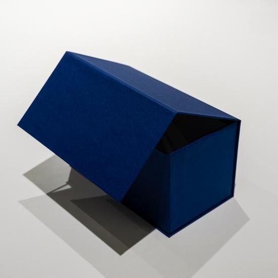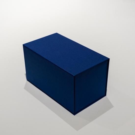タント紙を貼った本のような外観と開き方の貼箱です。磁石で蓋が固定される仕様です。ジャムなどの瓶物商品のパッケージに適しています。